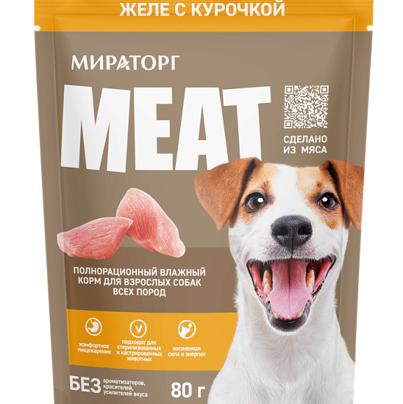 Корм консервированный полнорационный MEAT для взрослых собак всех пород "Желе с курочкой"